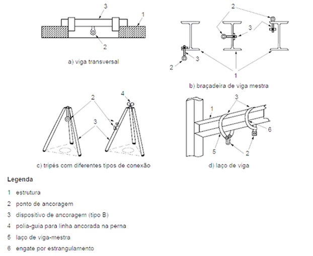 O primeiro tipo se refere a dispositivos de ancoragem projetados para serem fixados a uma estrutura, por meio de uma ancoragem estrutural ou de um elemento de fixação.
