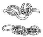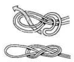 Esse nó em forma de oito. è o princípio de a maioria dos nós e se presta tanto na ponta da corda como na base dela. Para passar por uma ancoragem sem acesso e prendê-lo a qualquer ponto, para se fixar direto ao cinto. Serve também para emendas onde vais dar muita tração, facilitando assim sua soltura mais fácil. - Nove.